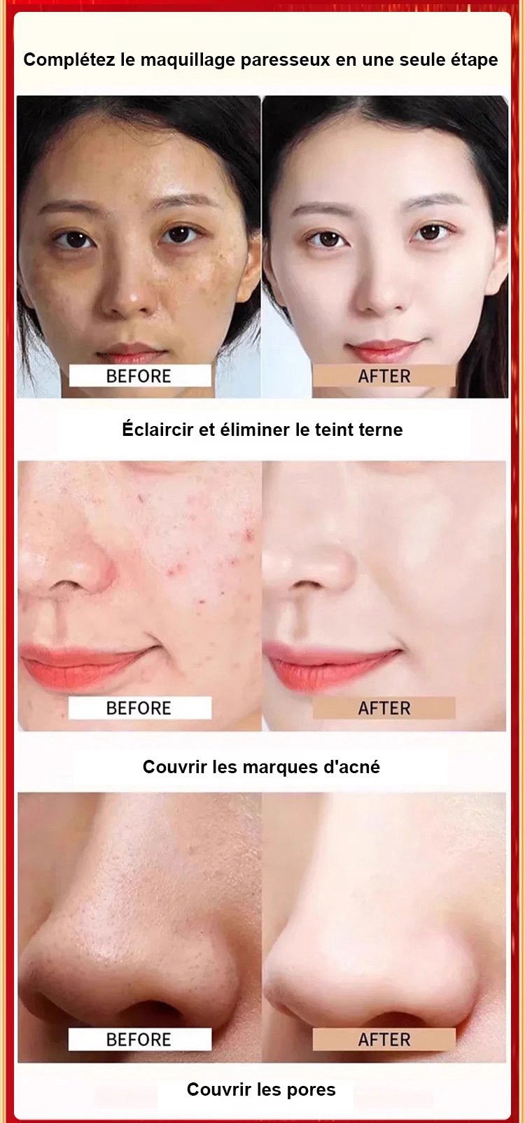 【Un flacon multi-effets】Crème sans maquillage à cinq actions anti-rides